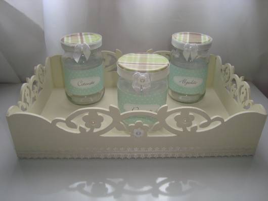 A bandeja de MDF foi usada como base para o kit de vidro