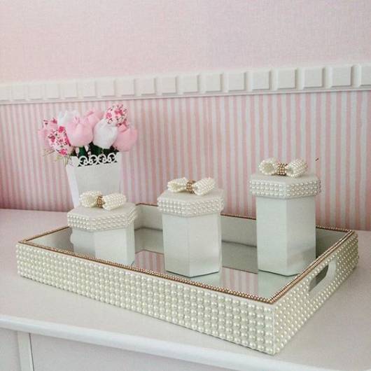bandeja decorada com pérolas