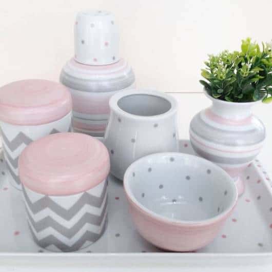 A combinação de rosa e cinza deixa o kit moderno