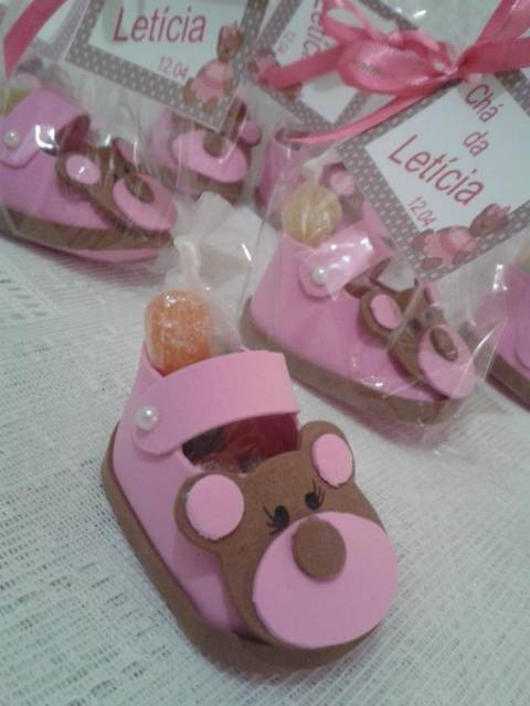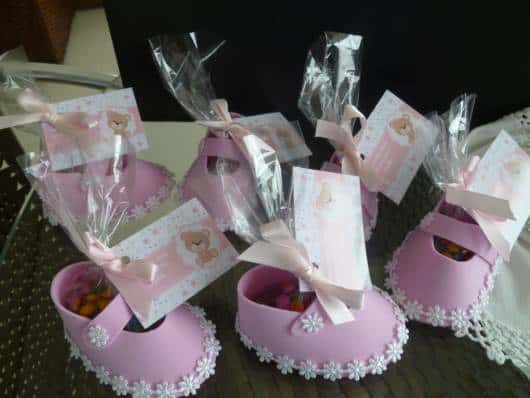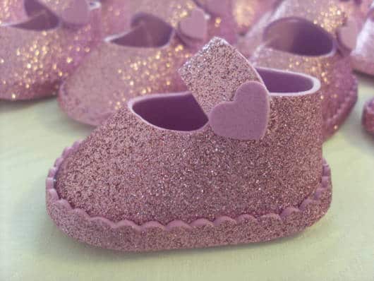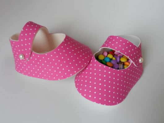 Para quem está precisando de inspirações para o chá de bebê de menina já pode incluir esse modelo de sapatinho entre as ideias para a lembrancinha da festa.