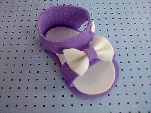Para variar um pouquinho do tradicional sapatinho, a proposta aqui é de fazer uma sandália de menininho para decorar a festa ou servir de lembrancinha da comemoração.