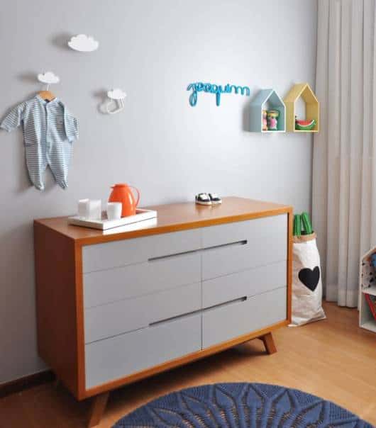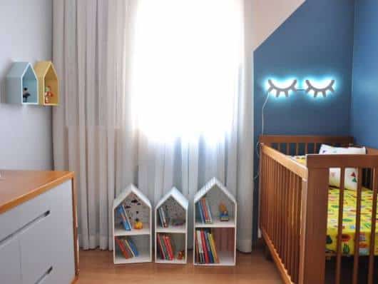 Os nichos em formato de casinha são coringa tanto para meninas, como para meninos; e este projeto mostra que este tipo de enfeite se encaixa muito bem na decoração para garotos.