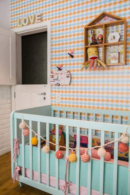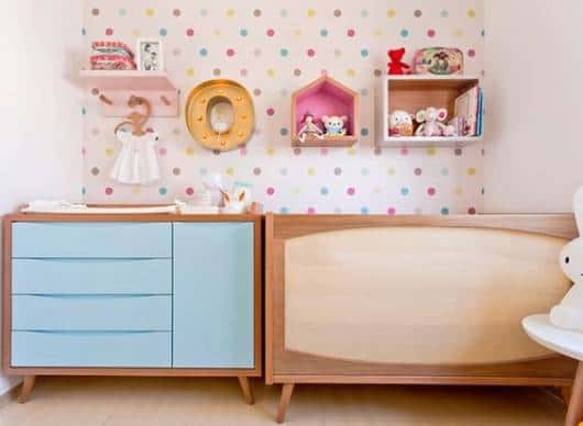 Outra ideia de decoração para quem quer incluir esse formato de nicho na decoração do quarto infantil é este projeto decorativo.