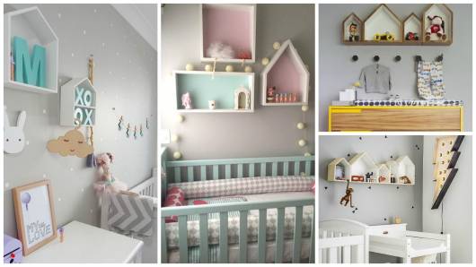 O nicho casinha tem uma forma delicada e pode ser usado em diferentes tamanhos para decorar as paredes do quarto e trazer um detalhe a mais com muito estilo para a decoração.