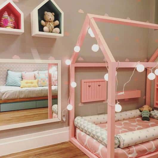 Na decoração do quarto de menina, o nicho casinha também é um dos elementos que pode ser usado para adicionar um detalhe a mais ao projeto decorativo.