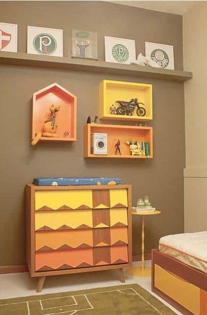 Ente as várias ideias para decorar o quarto infantil com nichos, este projeto mostra uma proposta colorida e alegre para a decoração do quarto das crianças.