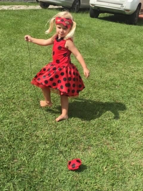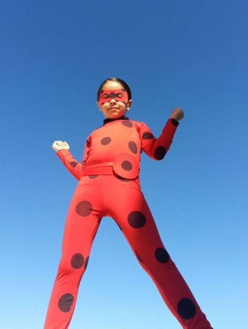 A roupa de joaninha só precisa de uma máscara para transformar na super heroína
