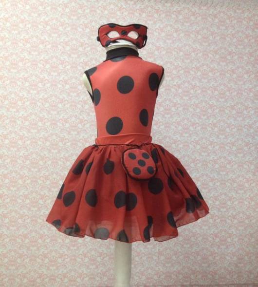 No entanto, também dá para se fantasiar de Ladybug com uma variação (saia, vestido), mas que traga mais riqueza de detalhes, de modo a deixar a fantasia luxuosa.