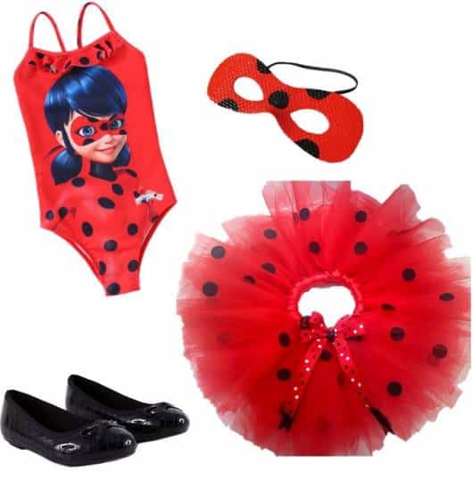 Até mesmo o maiô com estampa Ladybug Miraculous é uma das apostas para criar a fantasia improvisada da personagem.