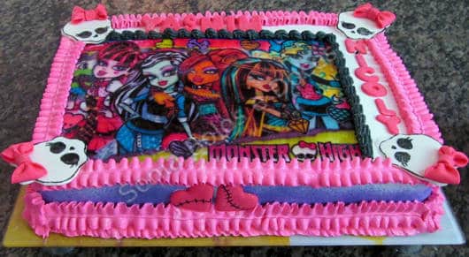 As famosas monstrinhas do mundo Monster High fazem sucesso entre as garotas, e prova disso é que as festas infantis com o tema estão cada vez mais frequentes. E quando o assunto é festa, não pode faltar bolo, então nada melhor que um bolo Monster High para um festa Monster High.