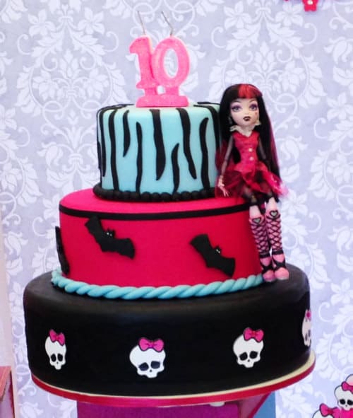 Ah, e nada de se desesperar porque você ainda não tem ideias para o bolo temático. Como sempre estamos aqui para dar aquela ajudinha extra, inclusive na hora de escolher um modelo de bolo que seja adequado para o estilo de festa e para o bolso ($$$). E para dar a ajudinha, separamos modelos e tipos de bolos com decoração Monster High.
